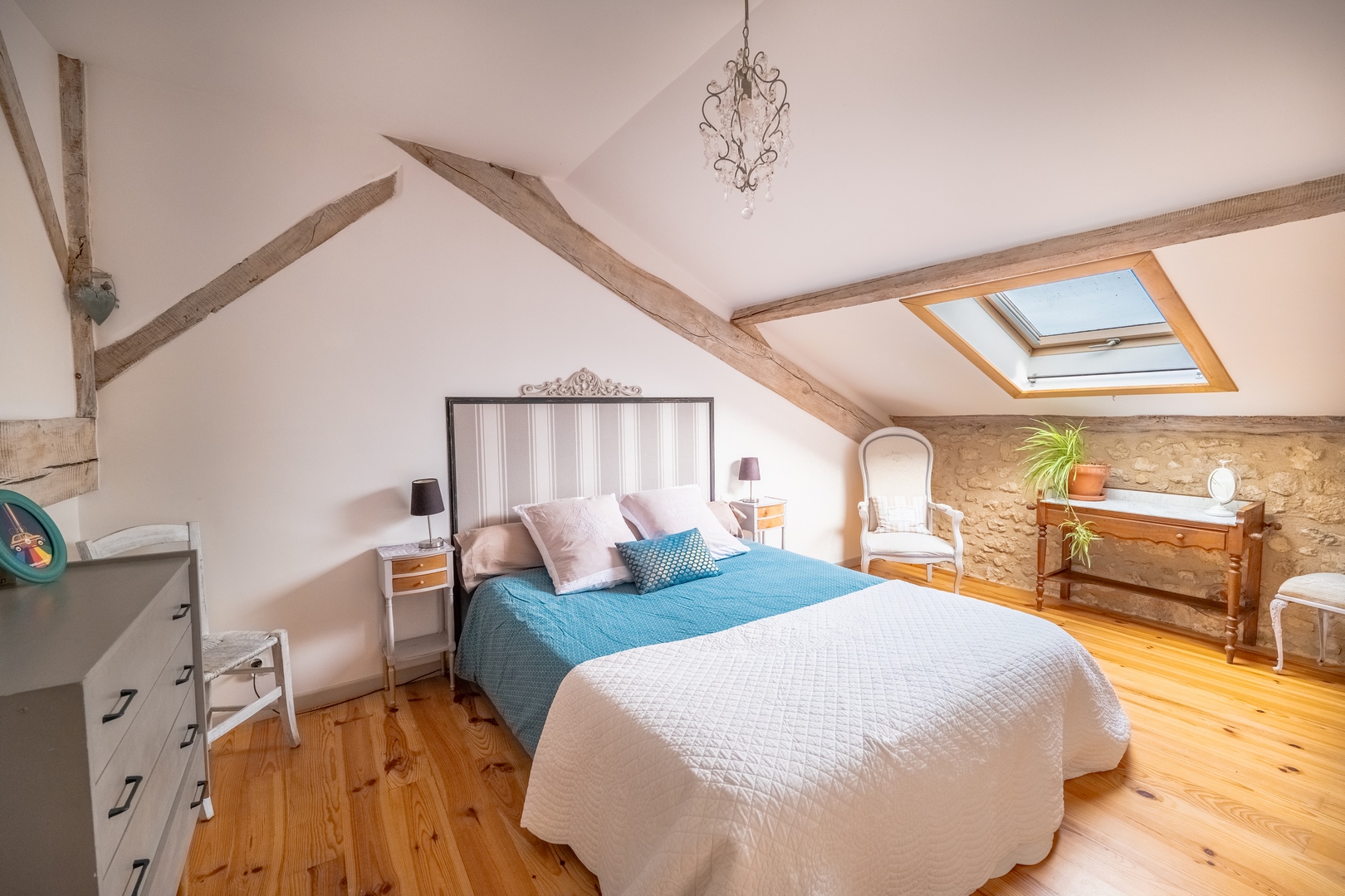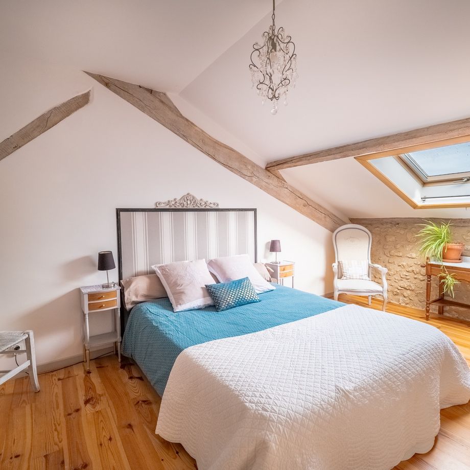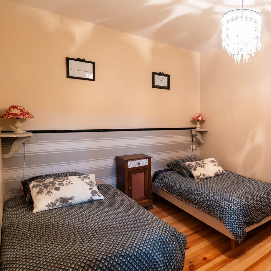 La première offre un lit de 160cm dans ses 18m². Avec son sol en parquet et sa charpente apparente, cette chambre est idéale pour un couple. La seconde est adaptée pour des enfants avec ses 2 lits jumeaux de 90cm. Ils peuvent éventuellement se rassembler en un lit King-size (180cm), accueillant ainsi un second couple.Les chambres disposent toutes 2 de Velux sur leur toit mansardé et de placards et/ou commodes de rangement. Vous pourrez ainsi vous mettre à l’aise dans votre gîte de charme.