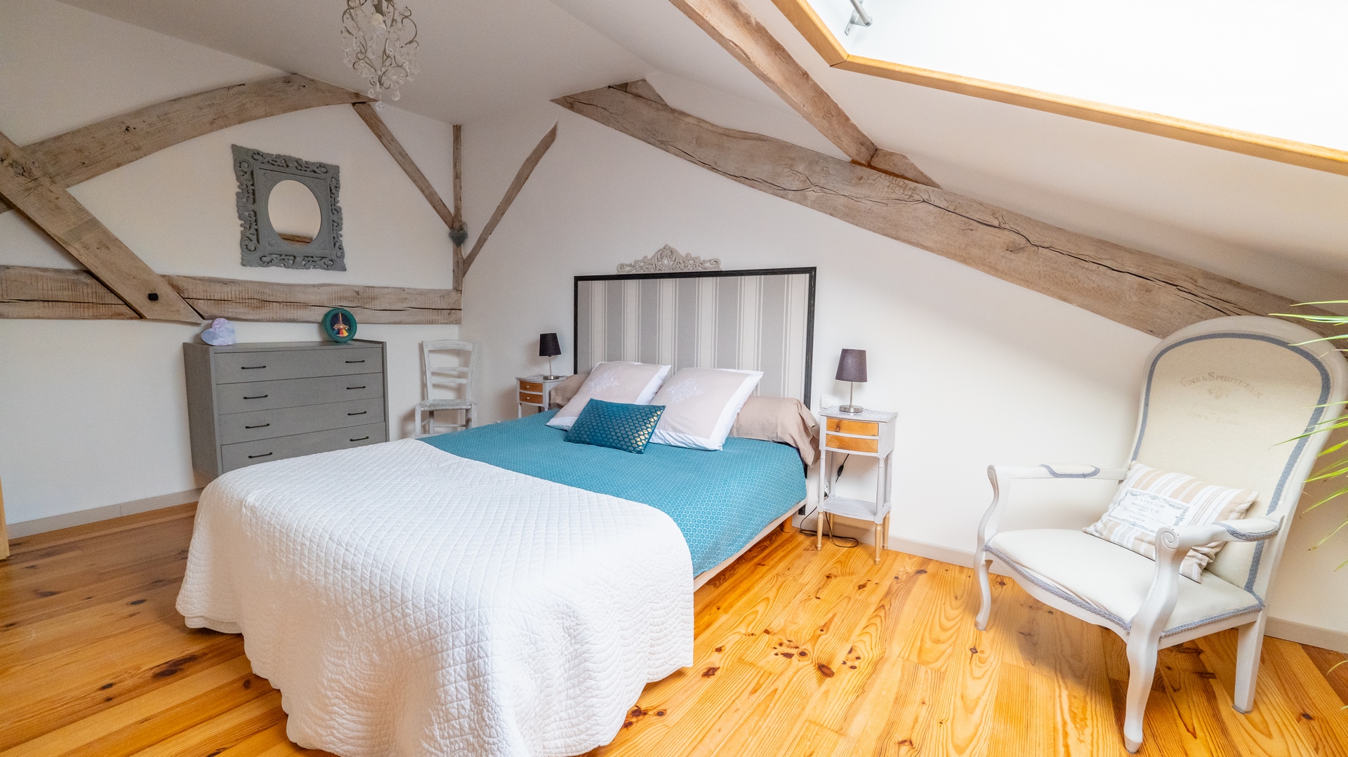 Outside, a large garden surrounds your vacation rental. Outdoor games and relaxation areas are at your disposal. You can take a stroll through our vineyards , but also through our woods to discover a pretty pigeon farm!